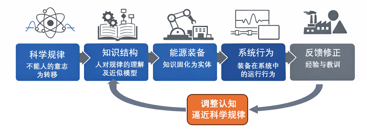 人类所能做的,并非改写规律本身,而是通过认识与理解,形成对规律的知识结构和近似模型。例如,电网调度策略、控制算法、工程设计规范、装备结构方案。