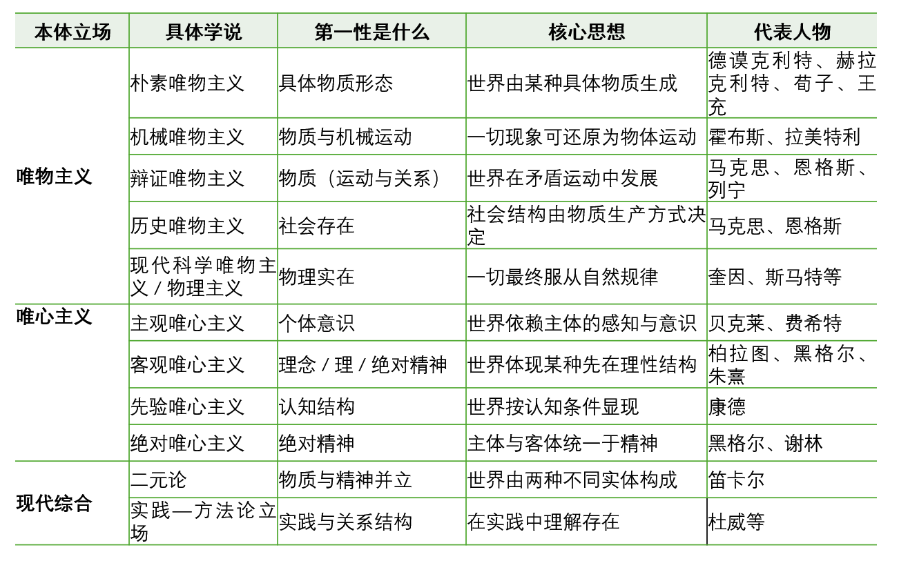 2026年1月2日能源与装备的本质问题,只是世界本体论讨论中的一个具体分支。关于“世界究竟是什么”这一根本问题,人类自古以来持续展开思考,至今尚未形成统一的结论。在不同历史时期和社会背景下,哲学家们提出了多种解释学说,形成了若干具有代表性的世界本体论立场,如下表所示。